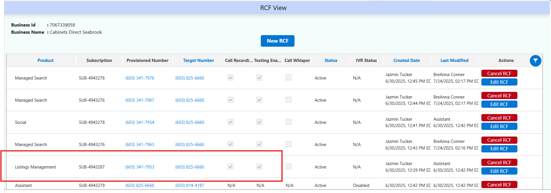 - The Assistant RCF appears throughout the site ONLY if a Listing RCF is not provisioned.